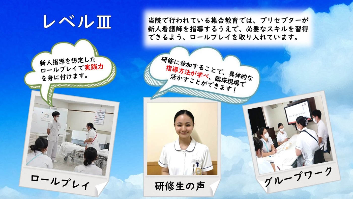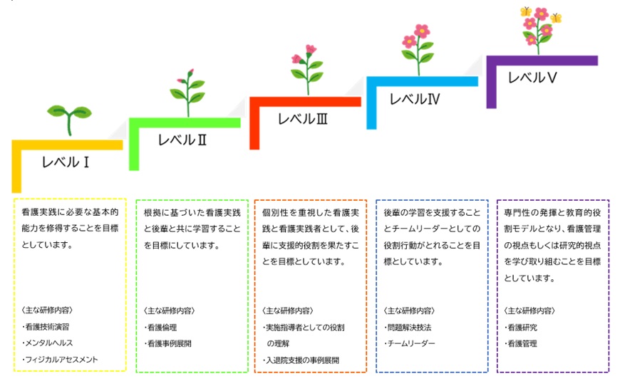 クリニカルラダーレベルに基づいた教育計画を実施しています。