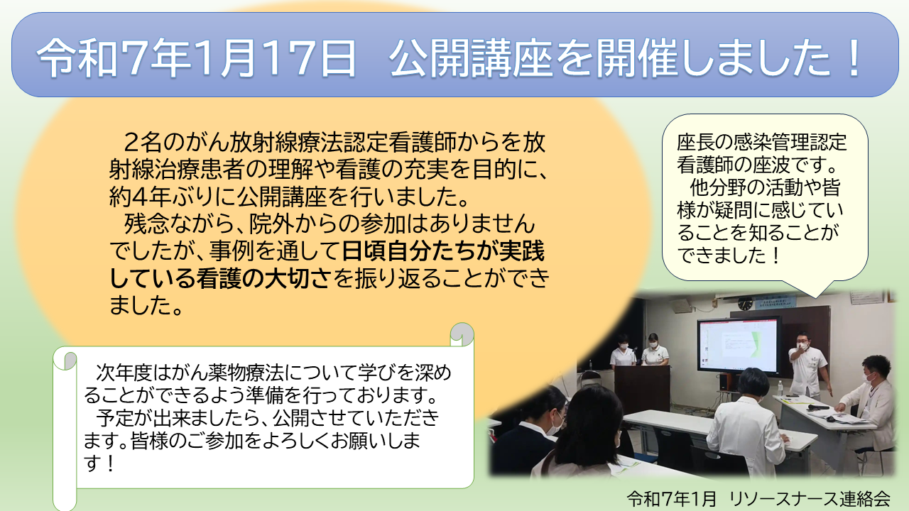 公開講座:がん患者・家族を癒す緩和ケアの実際(緩和ケア認定看護師)